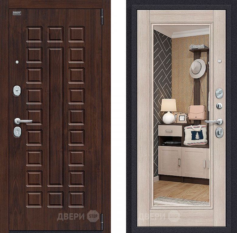 Входная металлическая Дверь Bravo Оптим Урбан с зеркалом Cappuccino Veralinga в Котельниках 860х2050 мм