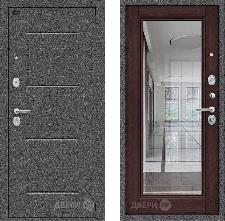 Входная металлическая Дверь Bravo Porta S-2 104/П61 с зеркалом венге в Котельниках 860х2050 мм