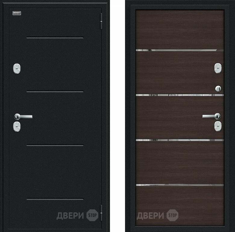 Входная металлическая Дверь Bravo Thermo Лайн Букле черное/Wenge Veralinga в Котельниках 860х2050 мм