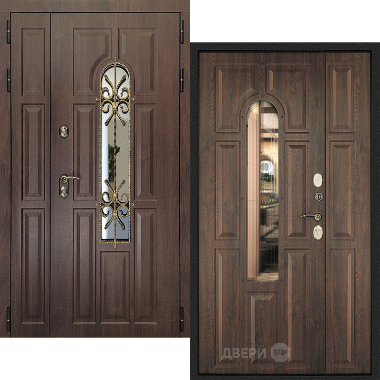 Входная металлическая Дверь Дверной Континент Лион Двустворчатая Темный орех в Котельниках 1100, 1200, 1300 * 2200мм