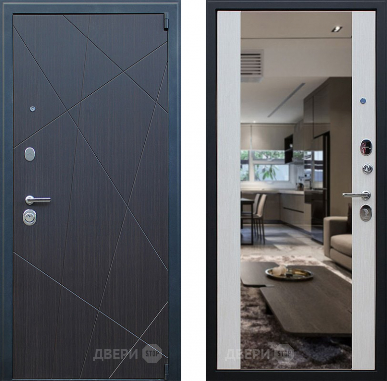 Входная металлическая Дверь АСД Вектор с зеркалом Лиственница белая в Котельниках 860х2050 мм