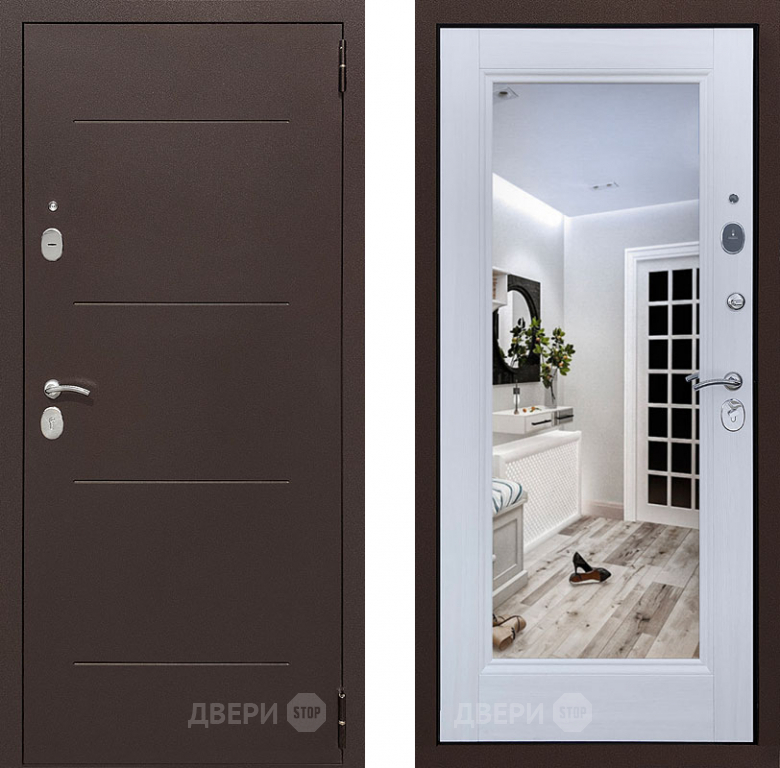 Дверь Престиж 100 с зеркалом Медь/Лиственница белая в Котельниках 960х2050 мм