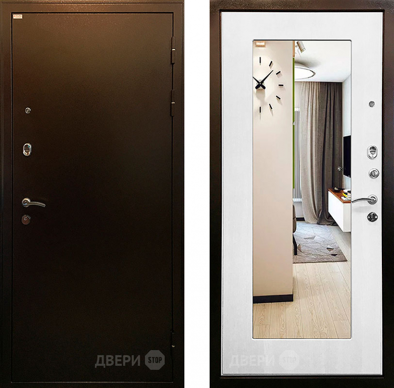Входная металлическая Дверь Ратибор Милан 3К зеркало Белый ясень в Котельниках 860х2050 мм