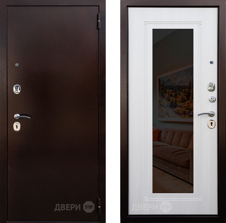 Входная металлическая Дверь Снедо Патриот зеркало Белая Лиственница в Котельниках 860х2050 мм