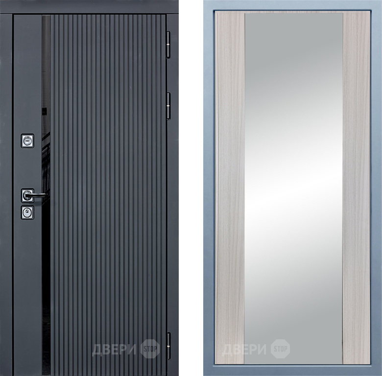 Входная Дверь Дива МХ-46 STR Д-15 Зеркало Сандал белый 860x2050 мм