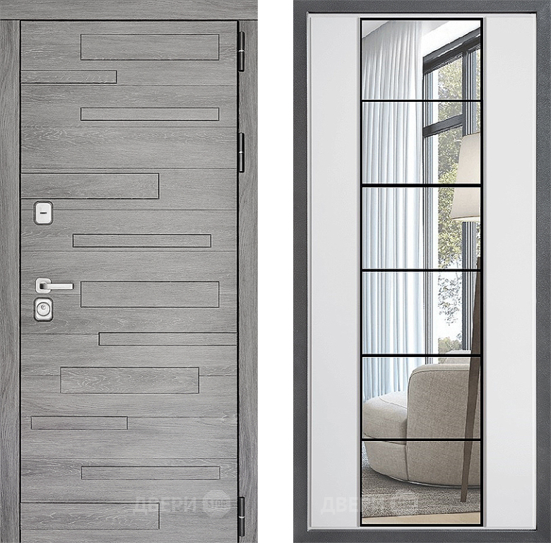 Входная Дверь Дверной континент ДК-10 ФЛЗ-2 Зеркало Белый софт 860x2050 мм
