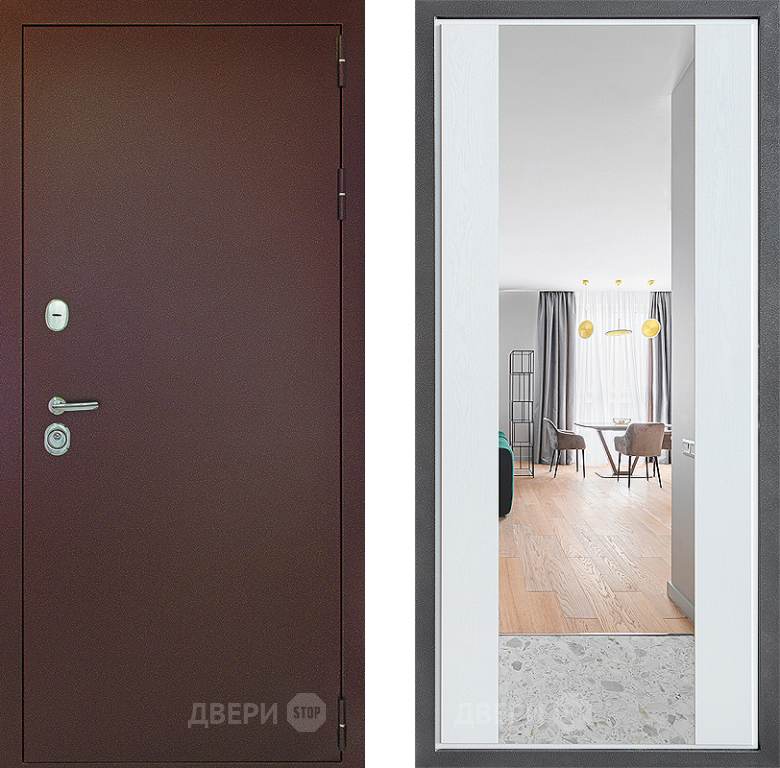 Входная Дверь Дверной континент Рубикон Медь Дизайн ФЛЗ-1 Зеркало Белое дерево 960x2050 мм