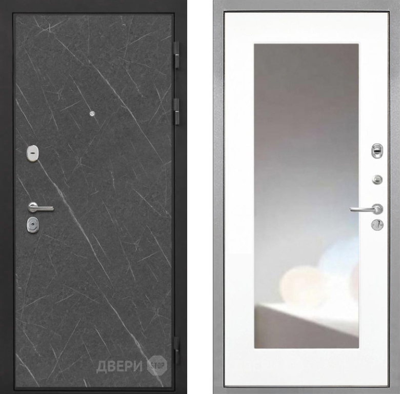 Входная Дверь Интекрон (INTECRON) Гектор Гранит Лава Оникс ФЛЗ-120-М Зеркало Белый матовый 860x2050 мм