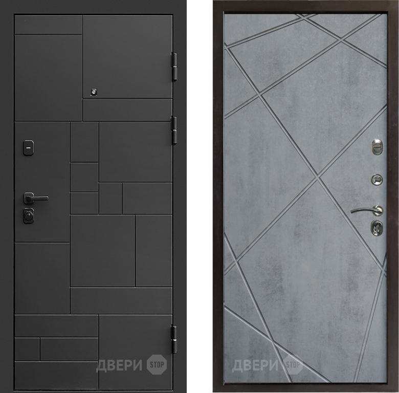 Входная Дверь Престиж Kvadro Лучи Бетон темный 860x2050 мм