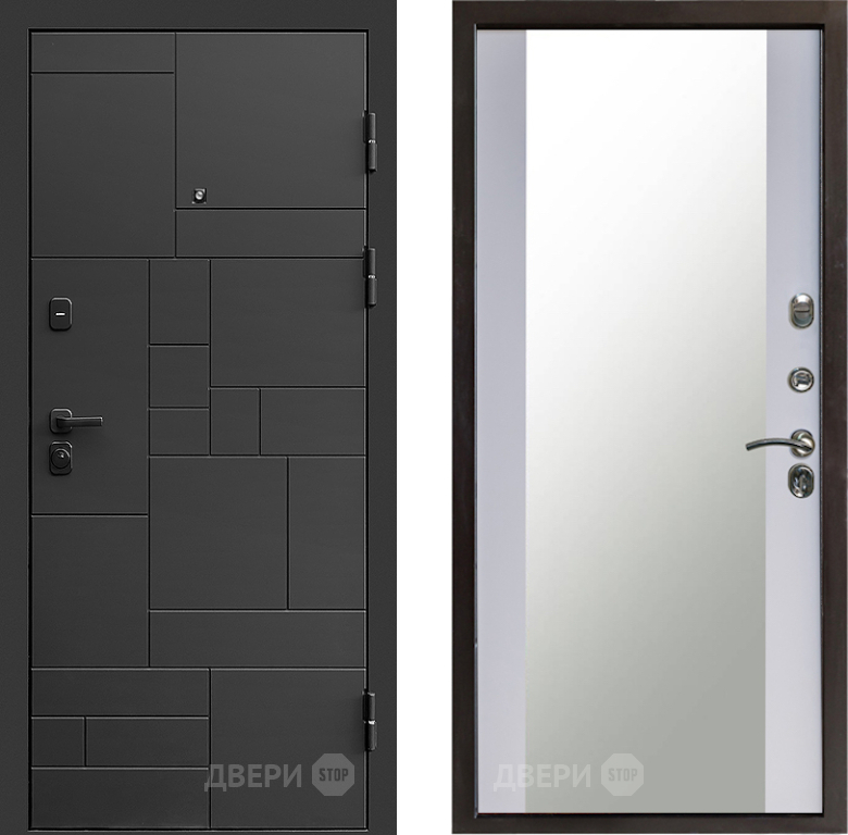 Входная Дверь Престиж Kvadro Зеркало Белый софт 960x2050 мм