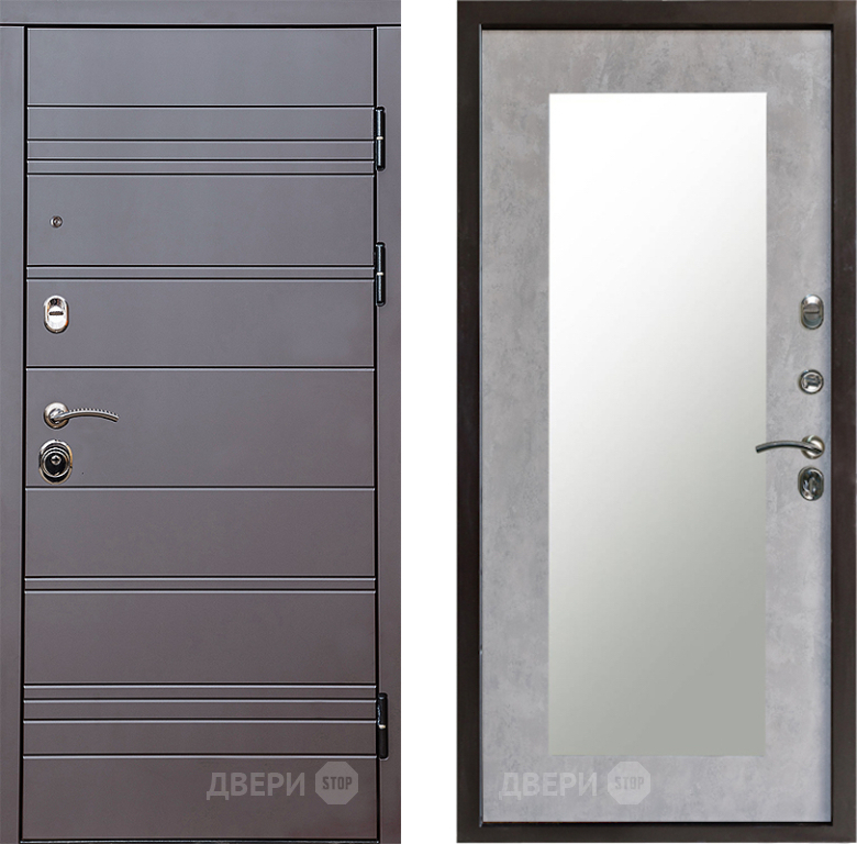 Входная Дверь Престиж Линия Браун Зеркло Пастораль Бетон светлый 860x2050 мм