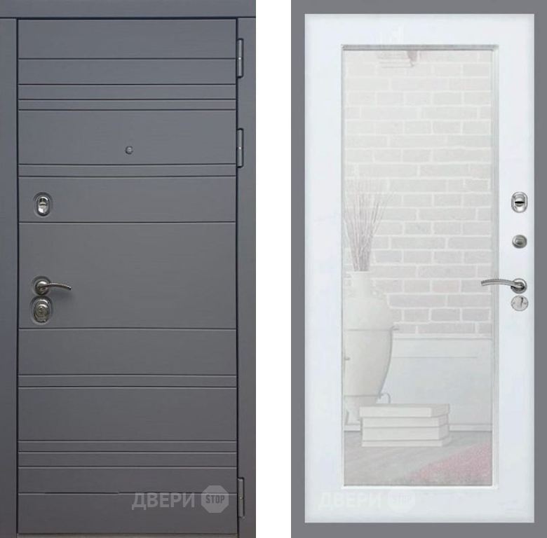 Входная Дверь Рекс (REX) 14 силк титан Зеркало Пастораль Белый ясень 860x2050 мм
