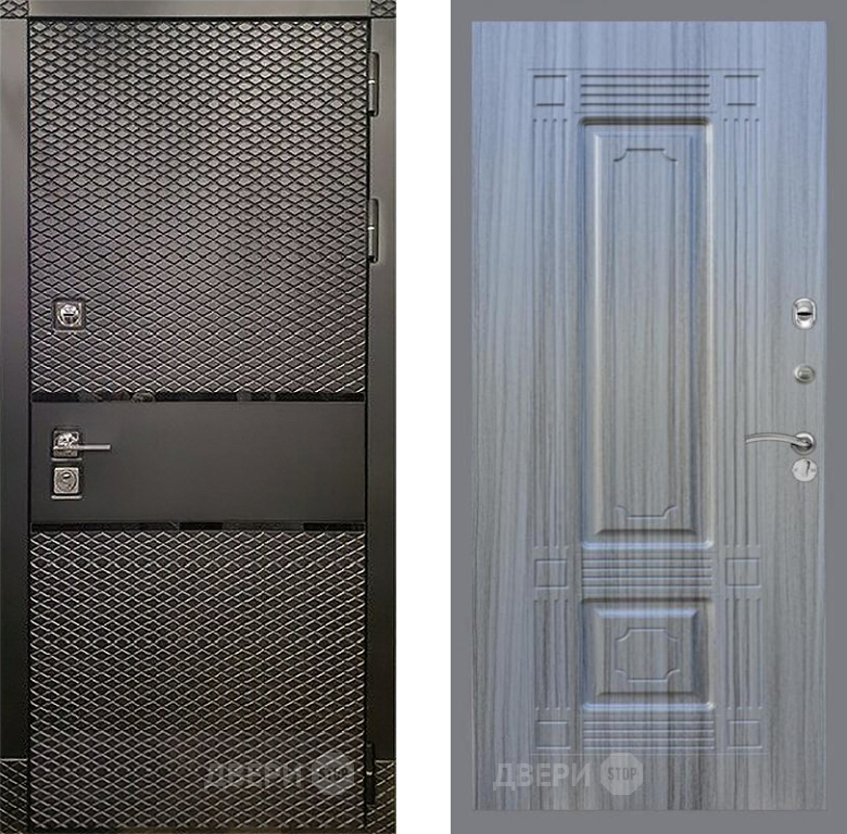 Входная Дверь Рекс (REX) 15 Черный Кварц FL-2 Сандал грей 860x2050 мм