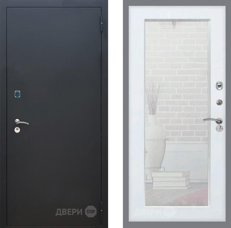 Входная Дверь Рекс (REX) 1A Черный Муар Зеркало Пастораль Белый ясень 860x2050 мм