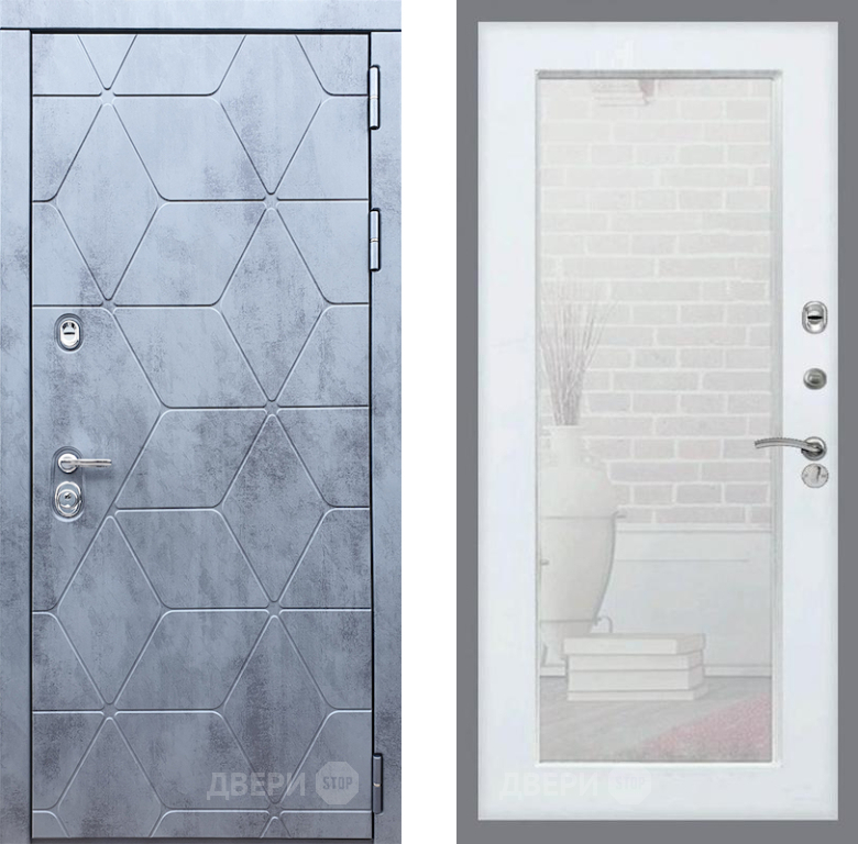 Входная Дверь Рекс (REX) 28 Зеркало Пастораль Силк Сноу 860x2050 мм