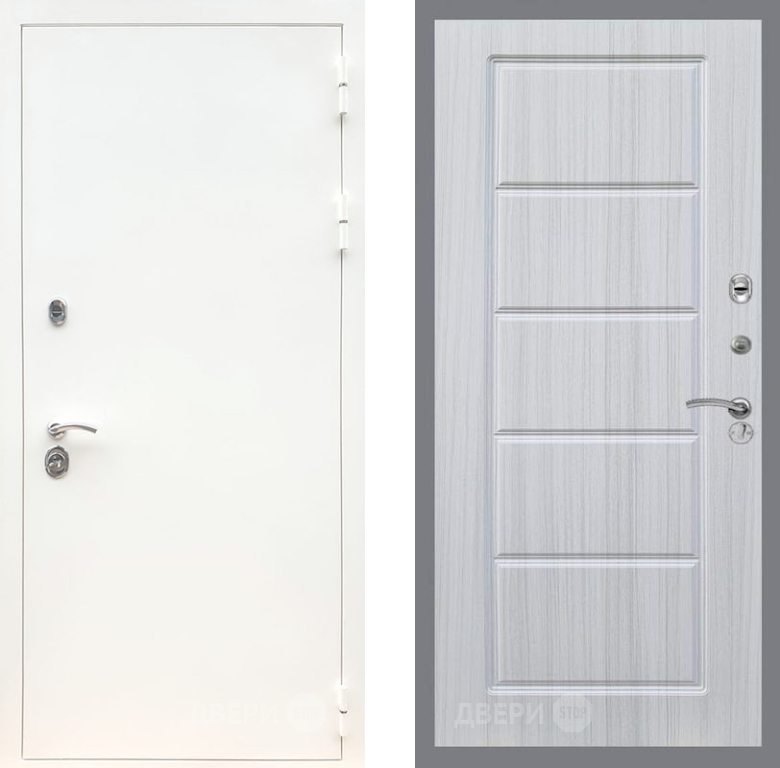 Входная Дверь Рекс (REX) 5 Белая Шагрень FL-39 Сандал белый 860x2050 мм