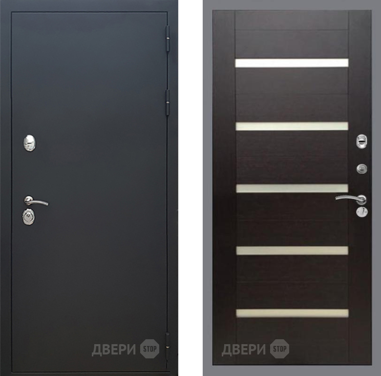 Входная Дверь Рекс (REX) 5 Черный Муар СБ-14 стекло белое венге поперечный 860x2050 мм