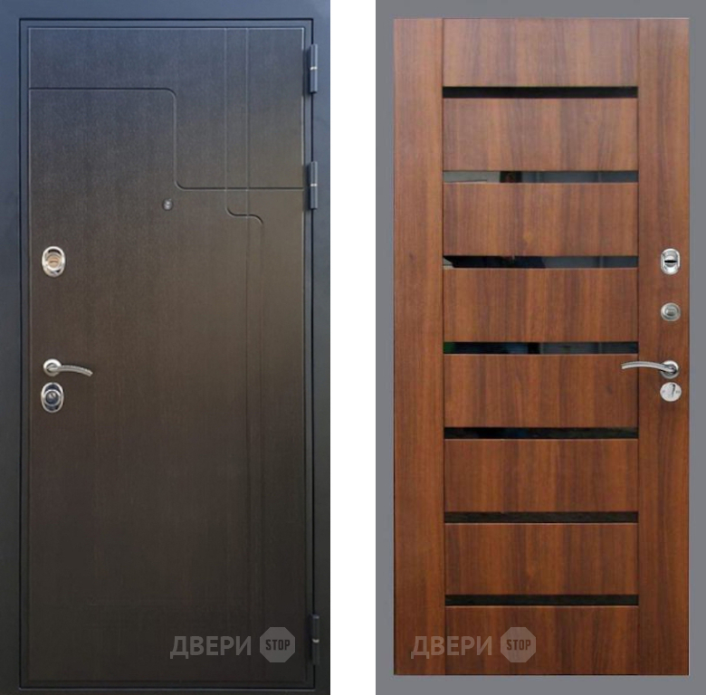 Входная Дверь Рекс (REX) Премиум-246 СБ-14 стекло черное Орех бренди 860x2050 мм