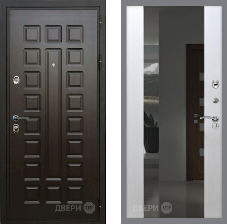 Входная Дверь Рекс (REX) Премиум 3к СБ-16 Зеркало Белый ясень 860x2050 мм
