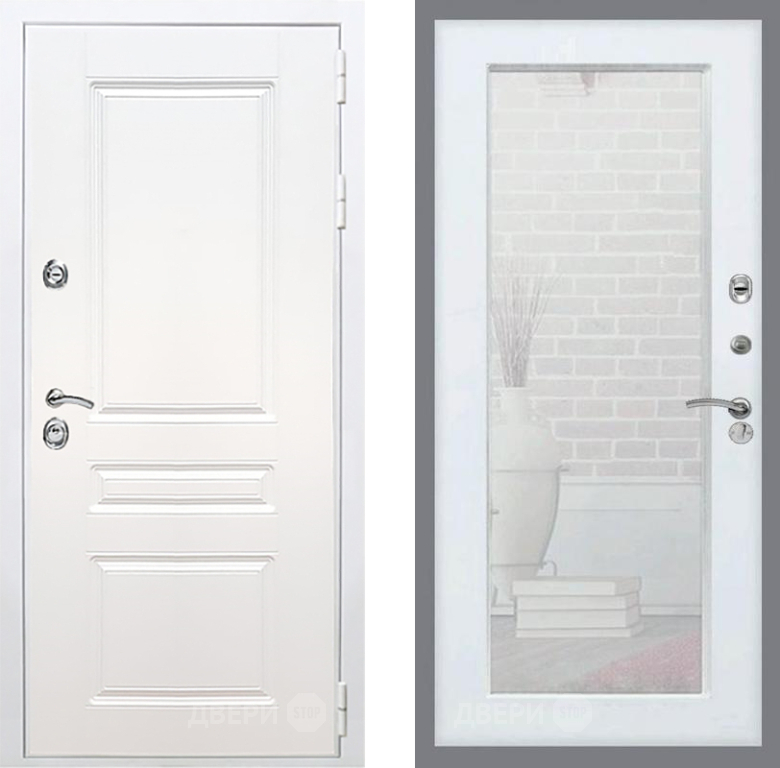 Входная Дверь Рекс (REX) Премиум-н Силк Сноу Зеркало Пастораль Белый ясень 860x2050 мм