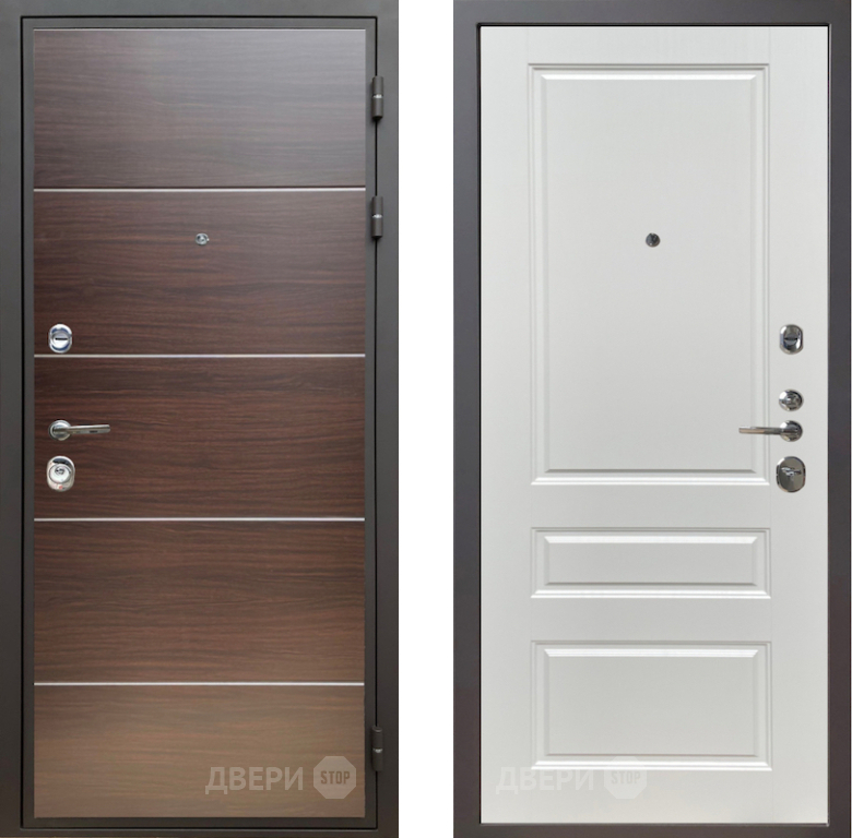 Входная Дверь Шелтер (SHELTER) Комфорт Венге структурный горизонт 1 Белый ясень 860x2050 мм