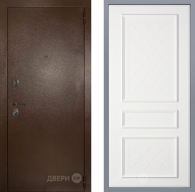 Входная Дверь Заводские двери Эталон 3к антик медь Урбино Белый софт 860x2050 мм